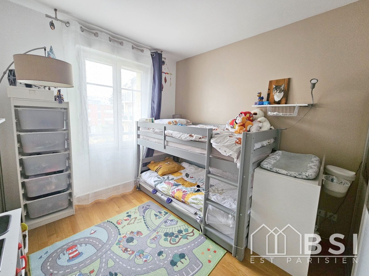 Découvrez ce superbe appartement de 3 pièces bien agencé situé sur le quartier des alouettes, alliant modernité et confort. Construit en 2001, il vous accueille avec une entrée , séjour / salle à manger en double exposition ( SUD - OUEST ) donnant sur BALCON , une cuisine aménagée et équipée poss. U.S , un dégagement menant à 2 chambres spacieuses avec placards , une salle de bains ainsi qu'un W.C. séparé. Vous bénéficierez également d'une cave et d'une place de parking privative en sous-sol . Situé à proximité des transports RER A & E - future ligne 15 - FUTUR TRAMWAY T1 , écoles et commerces, PARC POUR ENFANTS , cet appartement n'attend plus que vous. Contactez nous pour organiser une visite ! Contact au 06.24.53.23.48 ou 06.29.28.34.18 ou 06.99.92.39.12