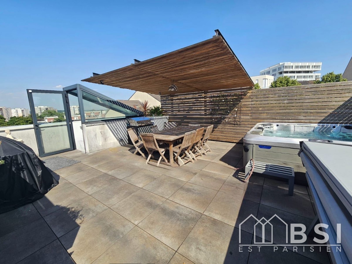 A quelques pas des commerces & porche RER A & BOIS - Magnifique maison contemporaine de 2016, parfaitement entretenue. Elle se compose d'une grande pièce de vie traversante avec cuisine U.S équipée de prés de 42 M² donnant accès sur TERRASSE , 3 chambres fonctionnelles dont une parentale avec sa salle d'eau personnelle , une seconde salle d'eau et un 2 Wc indépendants . LES " +" : un ROOFTOP DE 61 M² offrant une vue incroyable à 360° , un garage avec de nombreux rangements & une cave de prés de 8 M² .